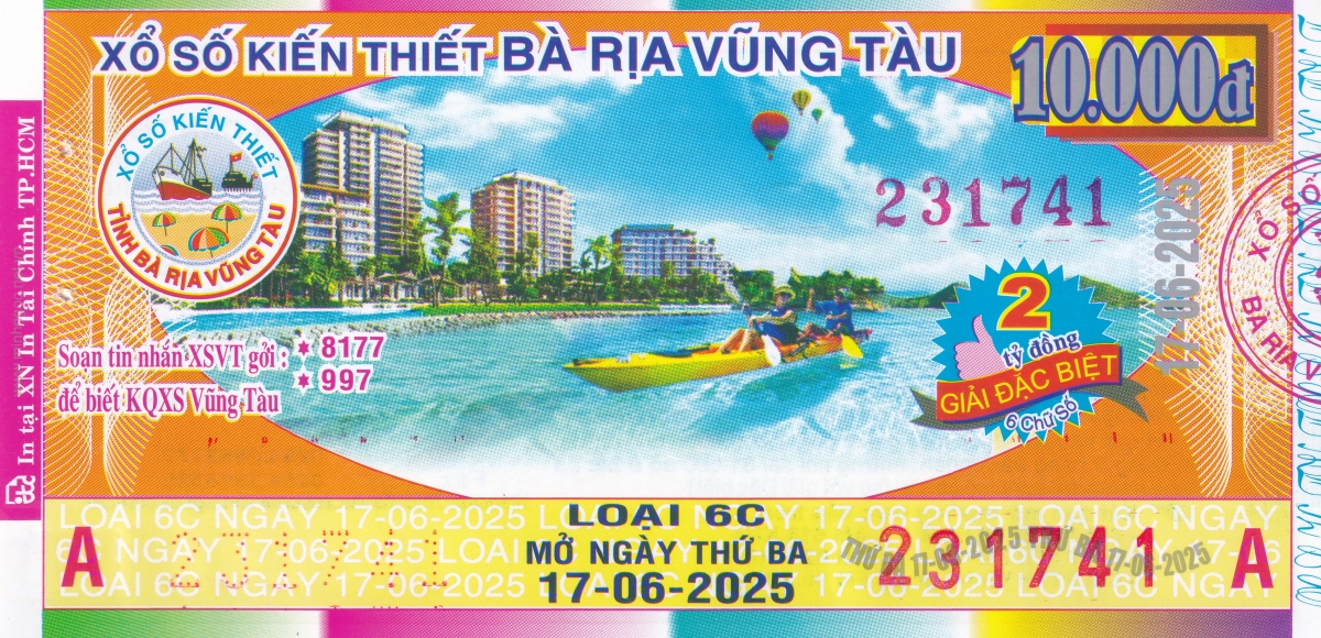 Mẫu vé kiểm tra khi đổi số trúng Vũng Tàu Ngày: 17/06/2025