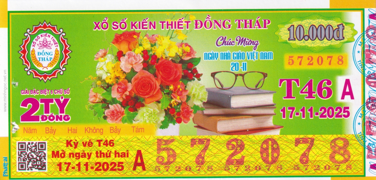Mẫu vé kiểm tra khi đổi số trúng Đồng Tháp Ngày: 17/11/2025