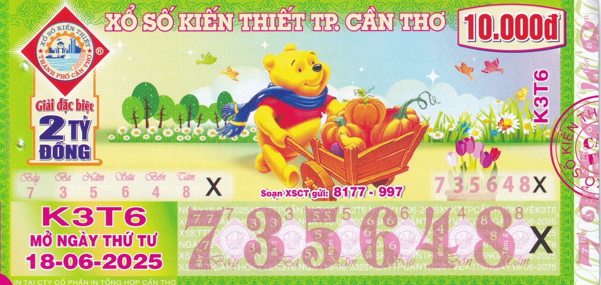 Mẫu vé kiểm tra khi đổi số trúng Cần Thơ Ngày: 18/06/2025