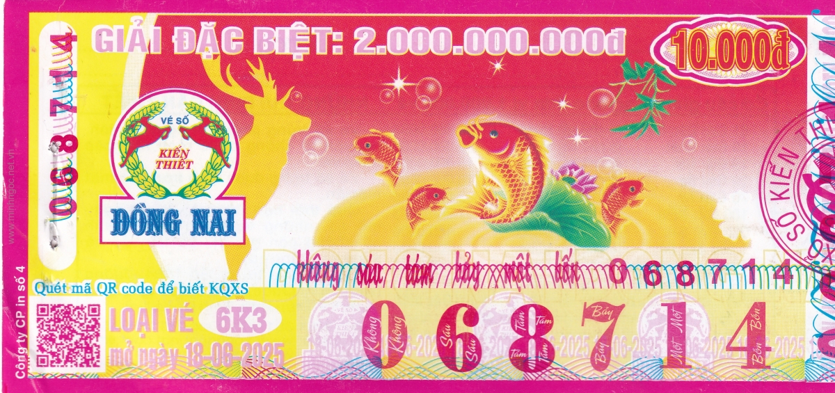 Mẫu vé kiểm tra khi đổi số trúng Đồng Nai Ngày: 18/06/2025