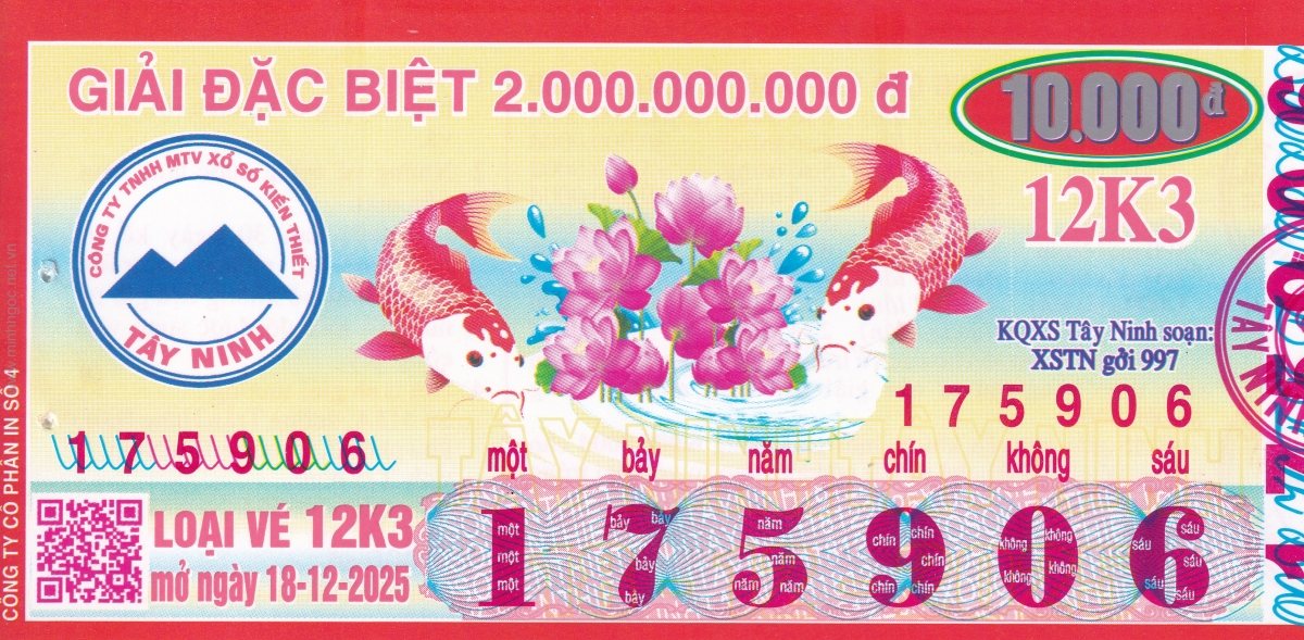 Mẫu vé kiểm tra khi đổi số trúng Tây Ninh Ngày: 18/12/2025