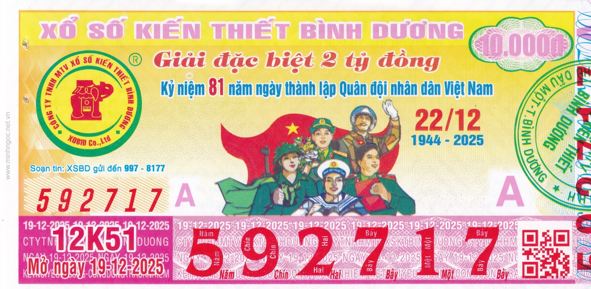 Mẫu vé kiểm tra khi đổi số trúng Bình Dương Ngày: 19/12/2025
