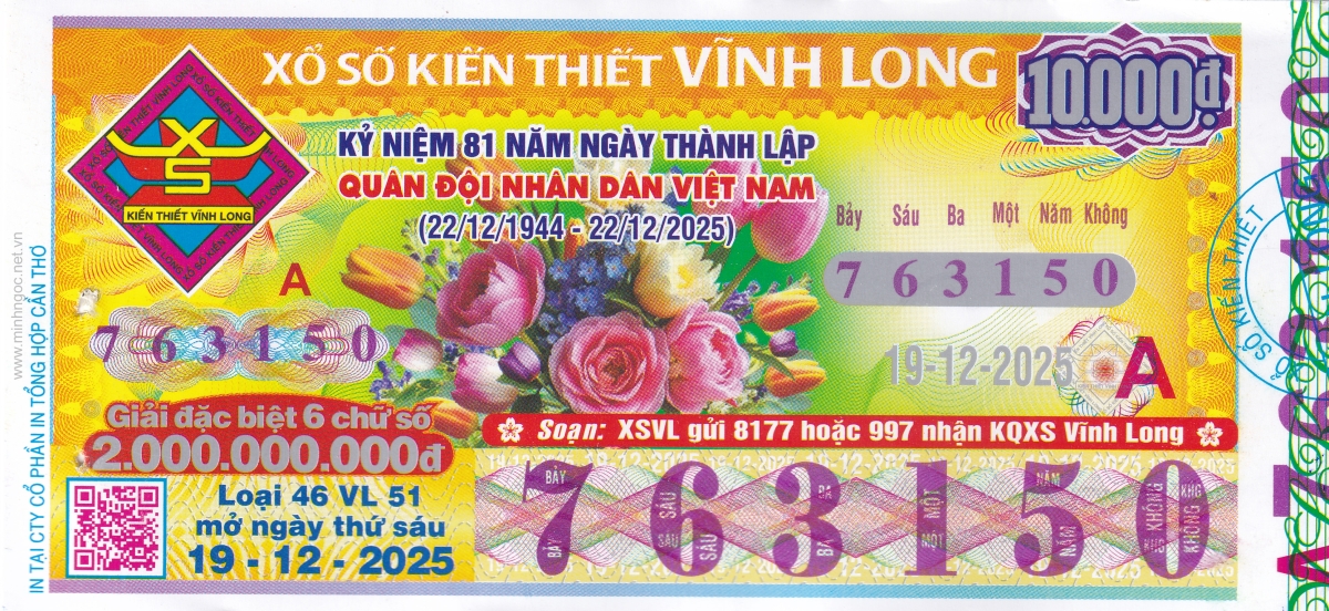 Mẫu vé kiểm tra khi đổi số trúng Vĩnh Long Ngày: 19/12/2025