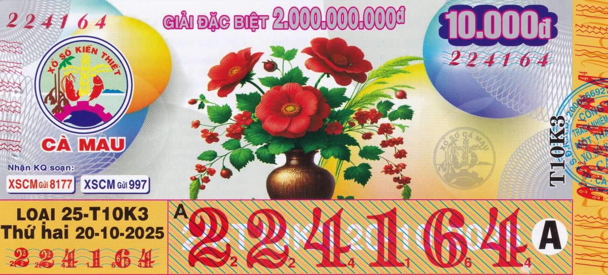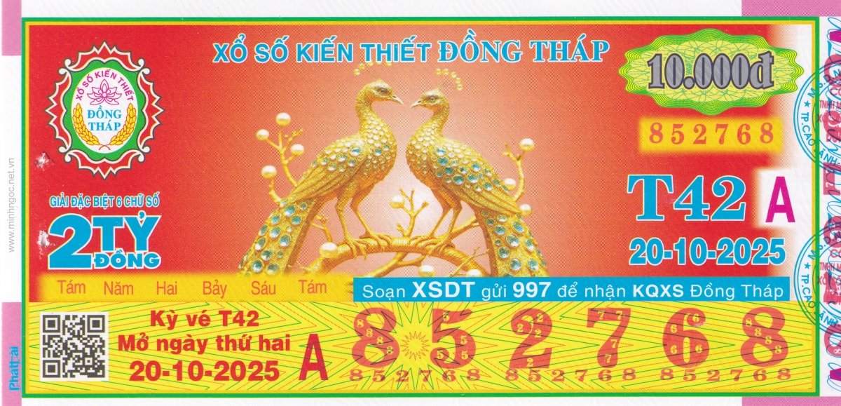 Mẫu vé kiểm tra khi đổi số trúng Đồng Tháp Ngày: 20/10/2025