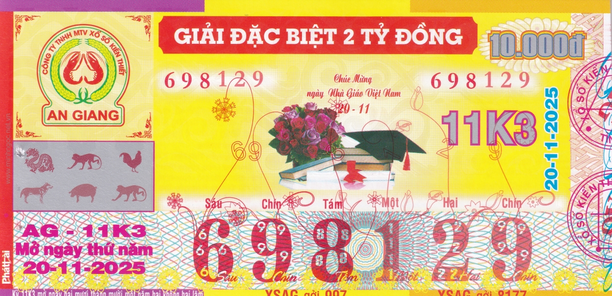 Mẫu vé kiểm tra khi đổi số trúng An Giang Ngày: 20/11/2025