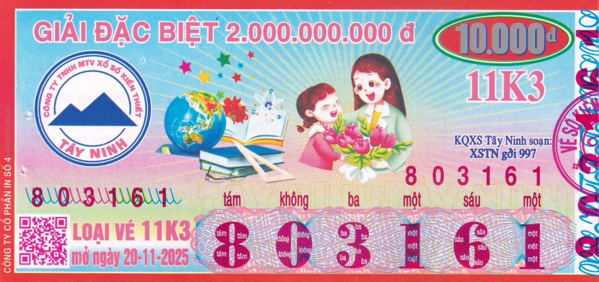 Mẫu vé kiểm tra khi đổi số trúng Tây Ninh Ngày: 20/11/2025