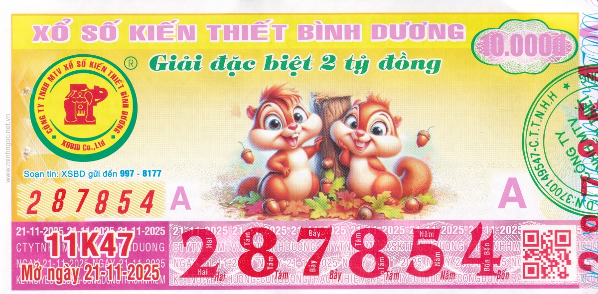 Mẫu vé kiểm tra khi đổi số trúng Bình Dương Ngày: 21/11/2025
