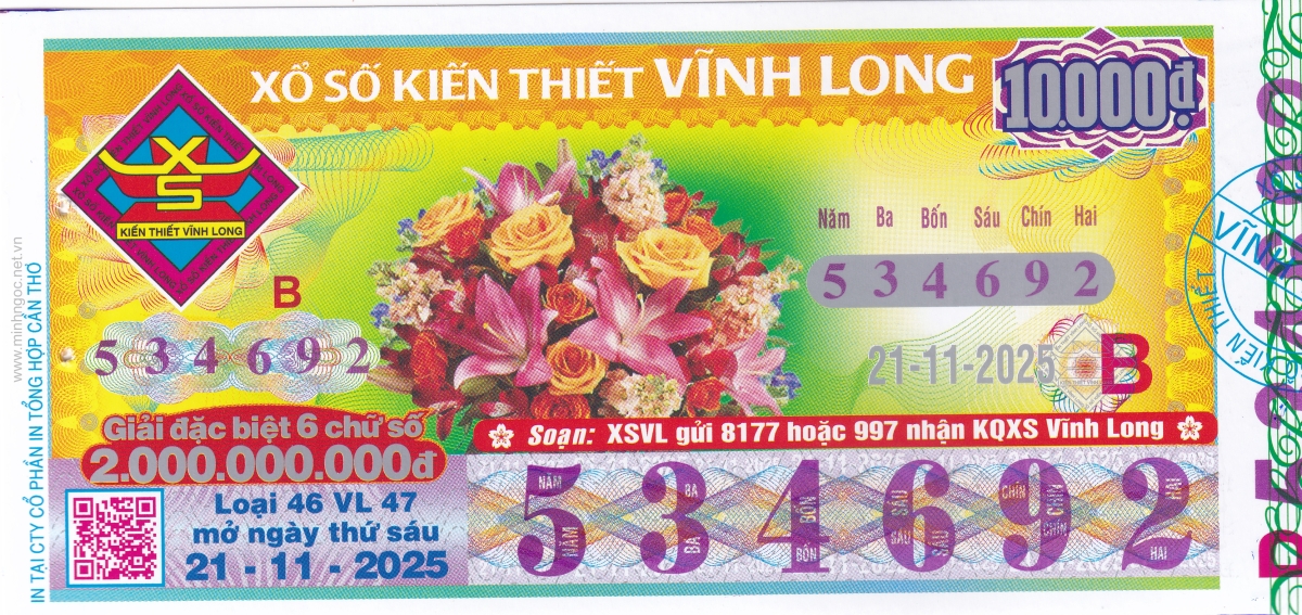Mẫu vé kiểm tra khi đổi số trúng Vĩnh Long Ngày: 21/11/2025