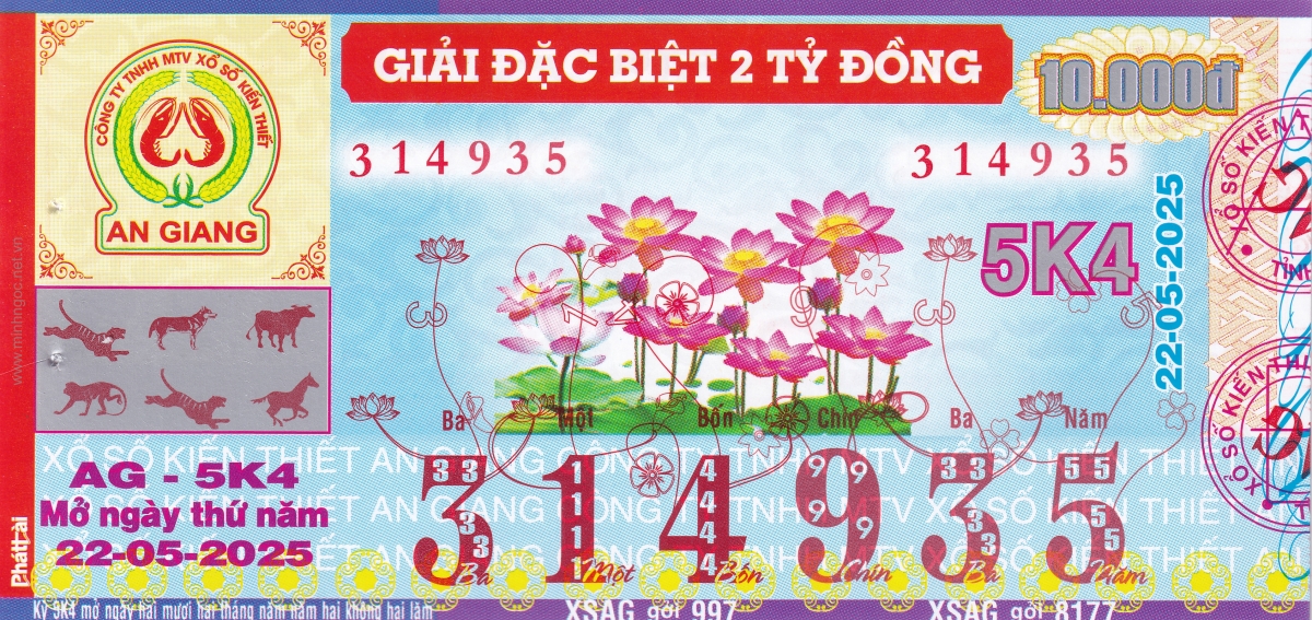 Mẫu vé kiểm tra khi đổi số trúng An Giang Ngày: 22/05/2025