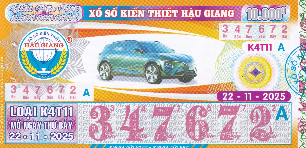 Mẫu vé kiểm tra khi đổi số trúng Hậu Giang Ngày: 22/11/2025