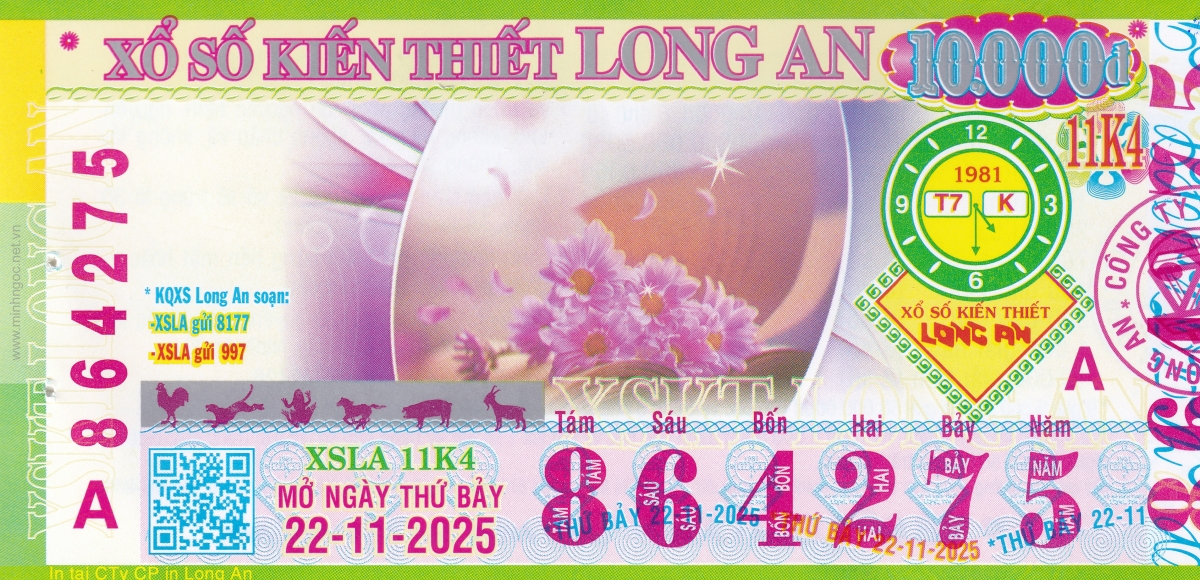 Mẫu vé kiểm tra khi đổi số trúng Long An Ngày: 22/11/2025