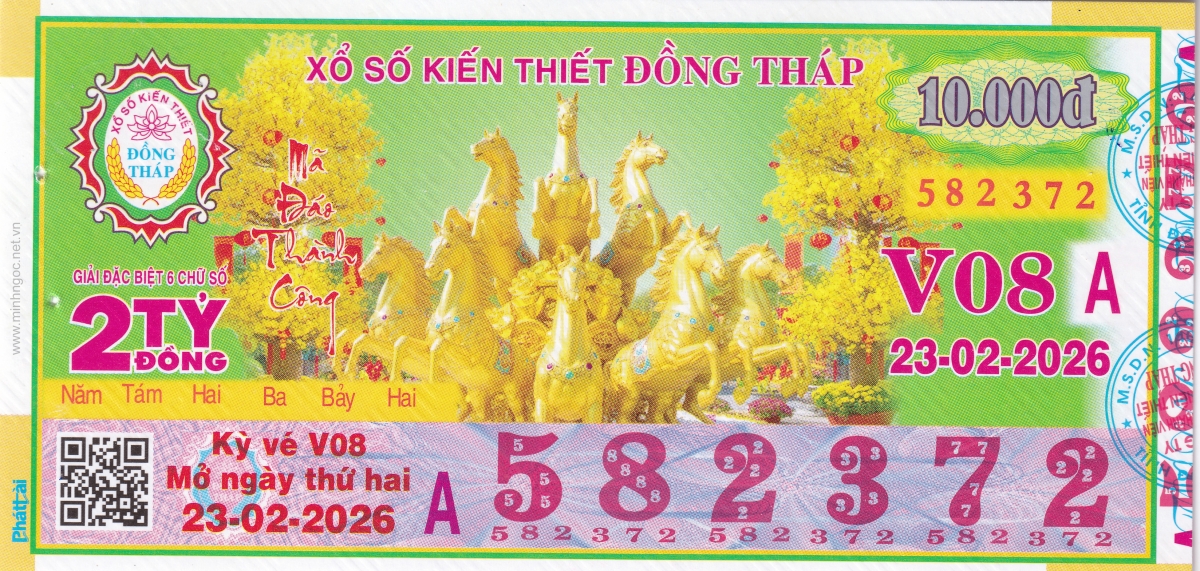Mẫu vé kiểm tra khi đổi số trúng Đồng Tháp Ngày: 23/02/2026