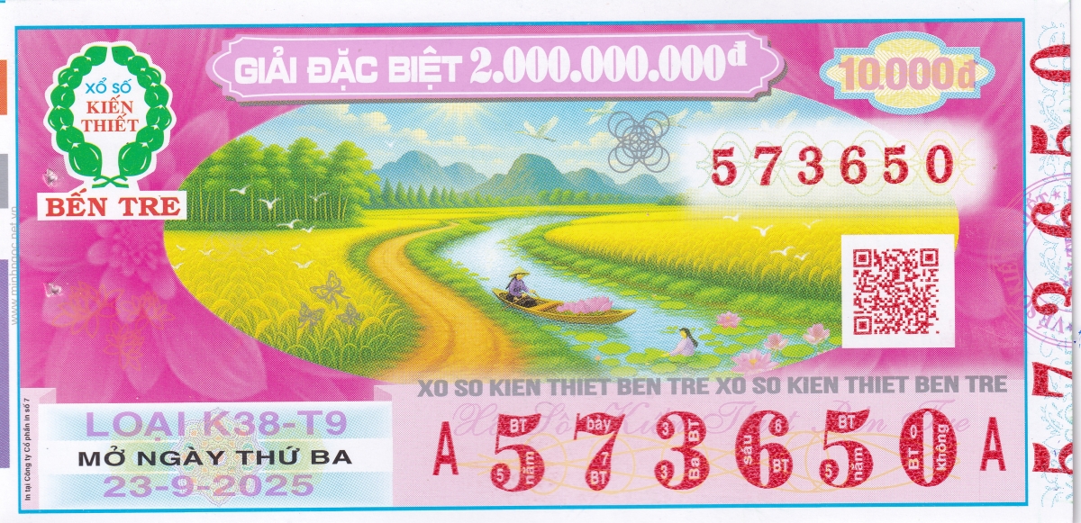 Mẫu vé kiểm tra khi đổi số trúng Bến Tre Ngày: 23/09/2025