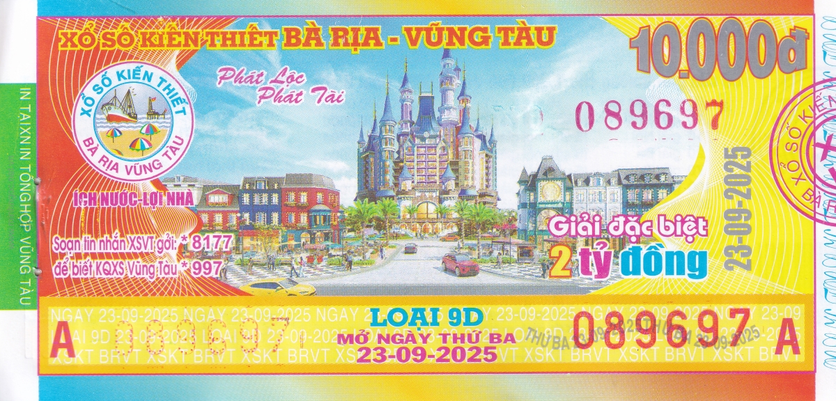 Mẫu vé kiểm tra khi đổi số trúng Vũng Tàu Ngày: 23/09/2025