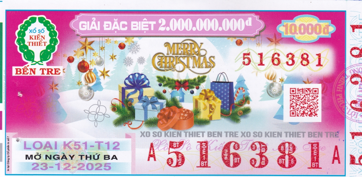 Mẫu vé kiểm tra khi đổi số trúng Bến Tre Ngày: 23/12/2025