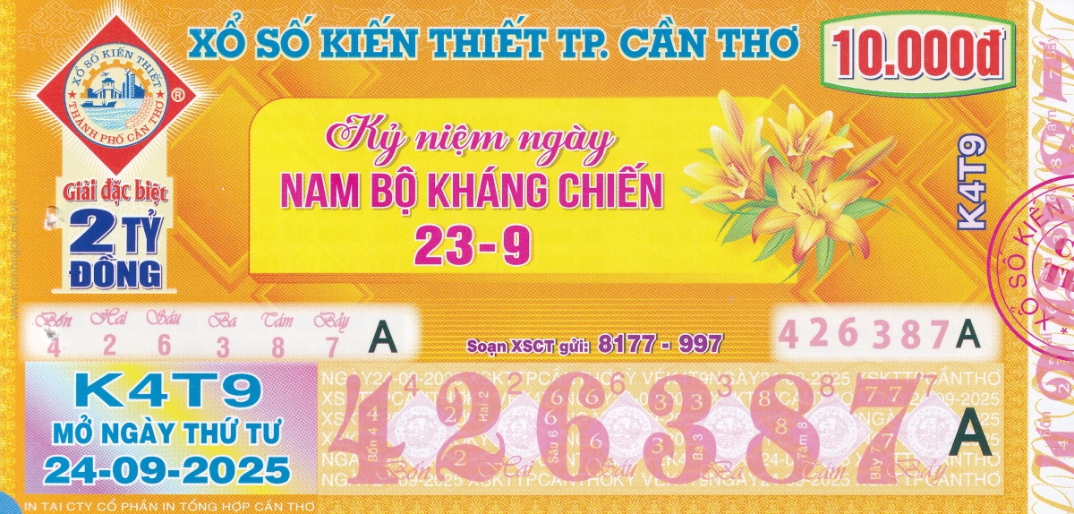 Mẫu vé kiểm tra khi đổi số trúng Cần Thơ Ngày: 24/09/2025