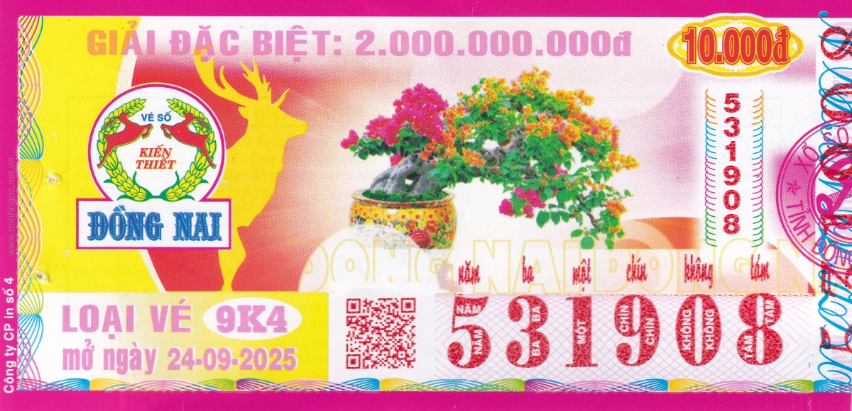 Mẫu vé kiểm tra khi đổi số trúng Đồng Nai Ngày: 24/09/2025