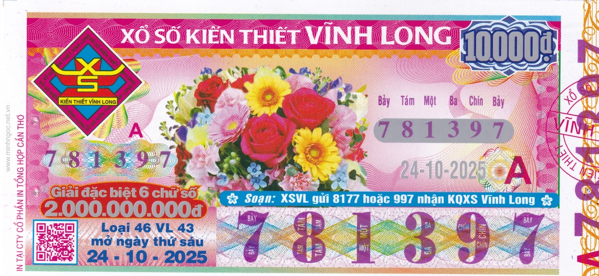 Mẫu vé kiểm tra khi đổi số trúng Vĩnh Long Ngày: 24/10/2025