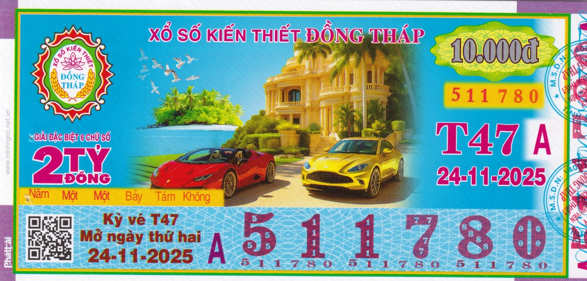 Mẫu vé kiểm tra khi đổi số trúng Đồng Tháp Ngày: 24/11/2025