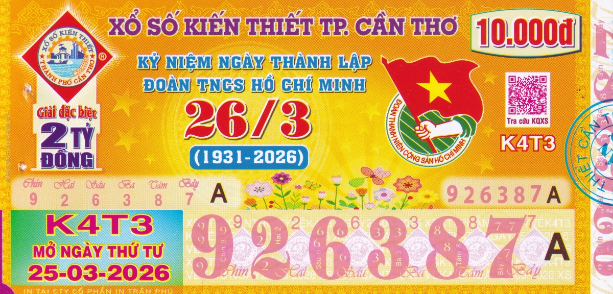 Mẫu vé kiểm tra khi đổi số trúng Cần Thơ Ngày: 25/03/2026