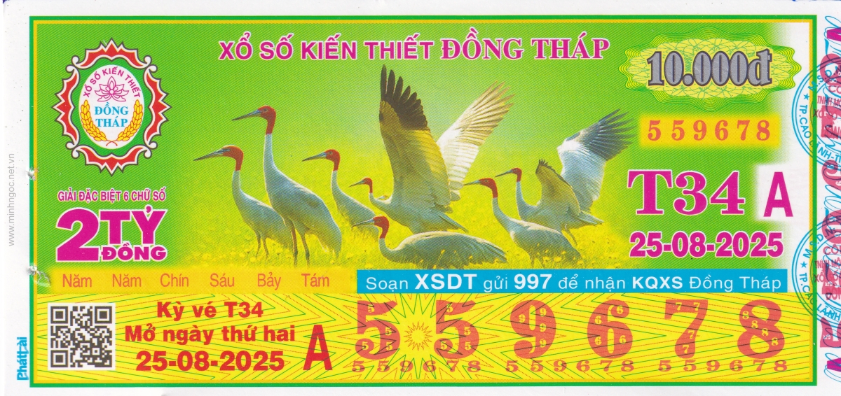 Mẫu vé kiểm tra khi đổi số trúng Đồng Tháp Ngày: 25/08/2025