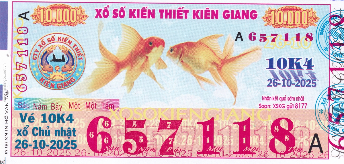 Mẫu vé kiểm tra khi đổi số trúng Kiên Giang Ngày: 26/10/2025