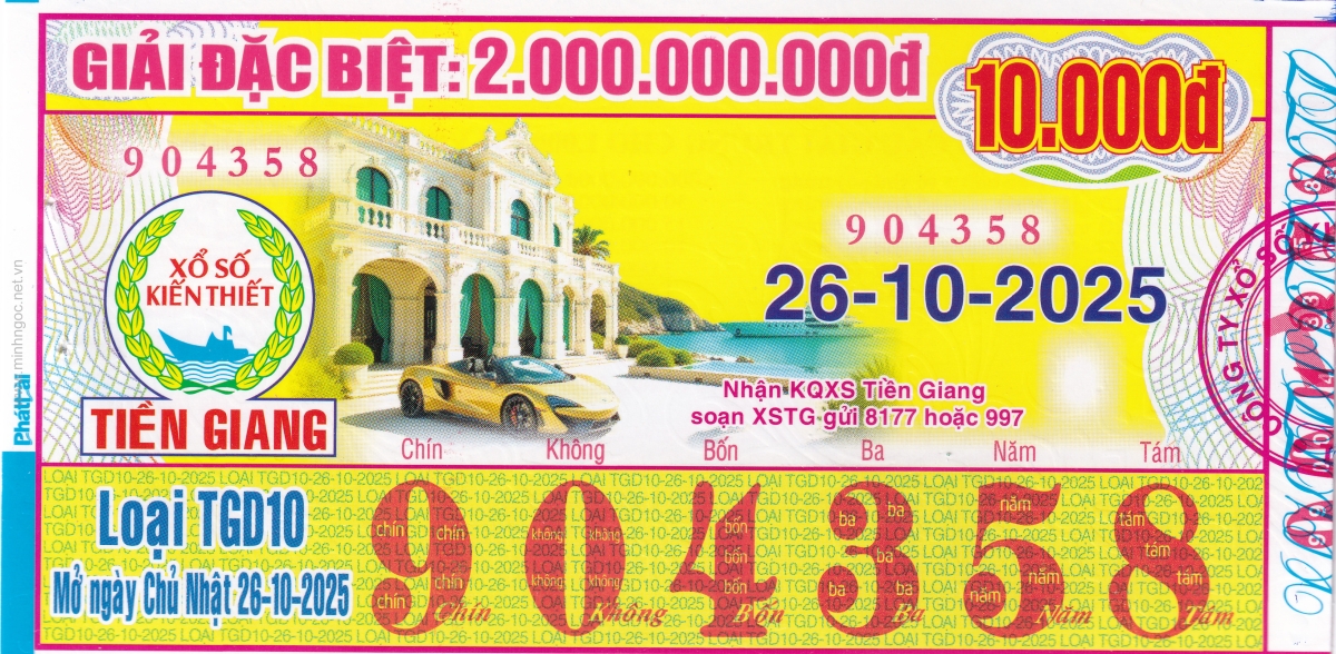 Mẫu vé kiểm tra khi đổi số trúng Tiền Giang Ngày: 26/10/2025