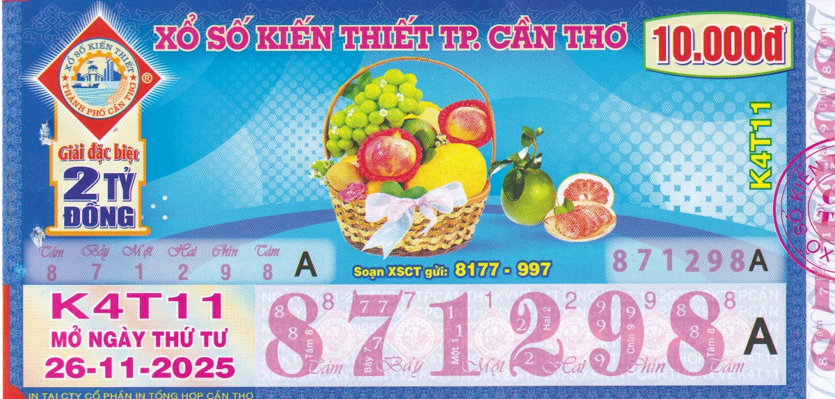Mẫu vé kiểm tra khi đổi số trúng Cần Thơ Ngày: 26/11/2025