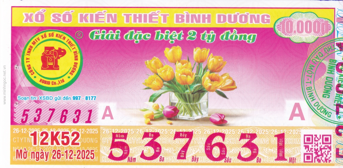 Mẫu vé kiểm tra khi đổi số trúng Bình Dương Ngày: 26/12/2025
