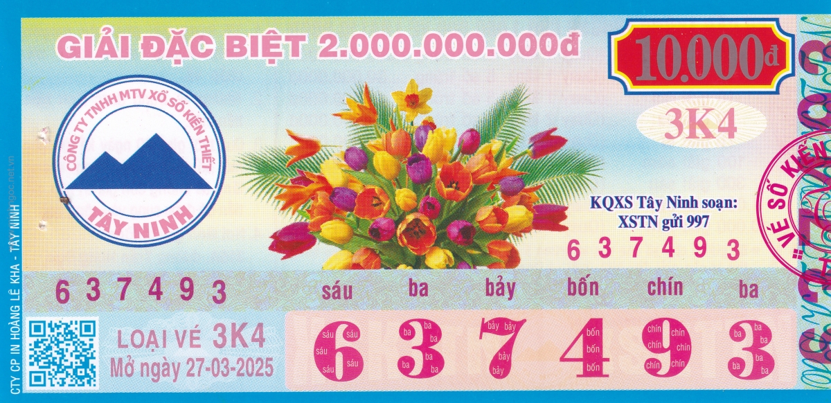 Mẫu vé kiểm tra khi đổi số trúng Tây Ninh Ngày: 27/03/2025