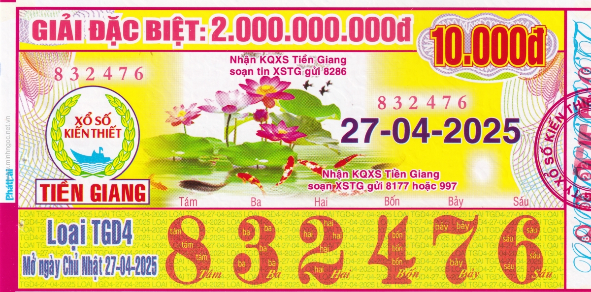 Mẫu vé kiểm tra khi đổi số trúng Tiền Giang Ngày: 27/04/2025