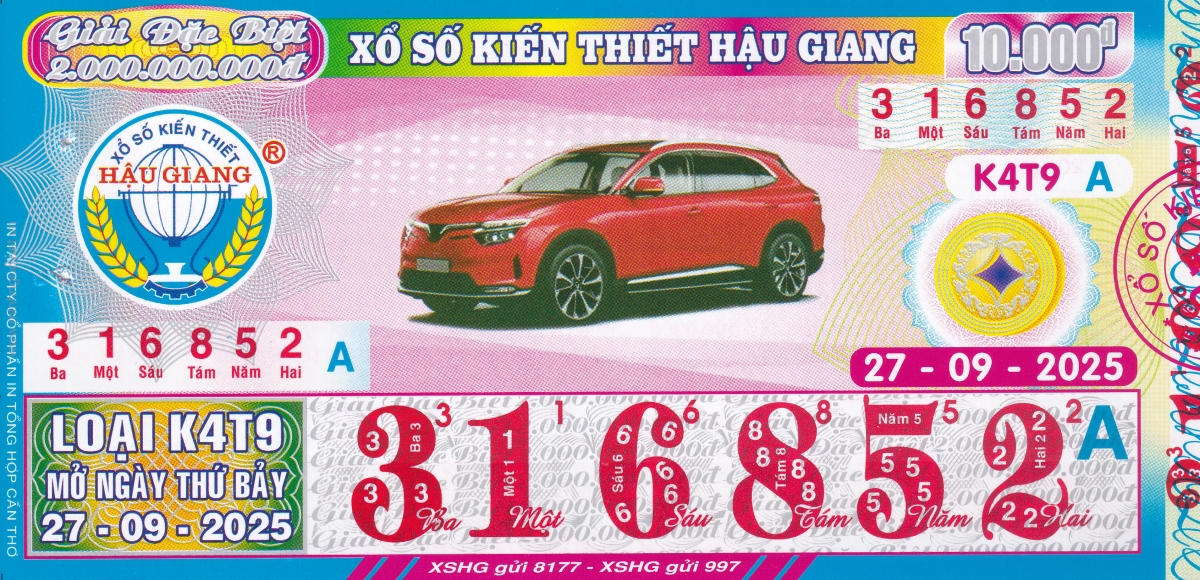 Mẫu vé kiểm tra khi đổi số trúng Hậu Giang Ngày: 27/09/2025