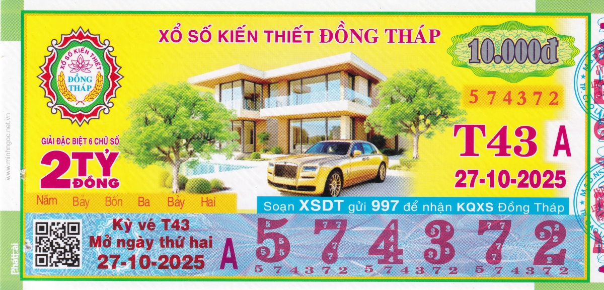 Mẫu vé kiểm tra khi đổi số trúng Đồng Tháp Ngày: 27/10/2025