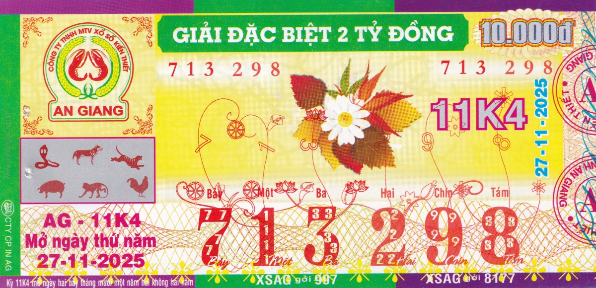 Mẫu vé kiểm tra khi đổi số trúng An Giang Ngày: 27/11/2025