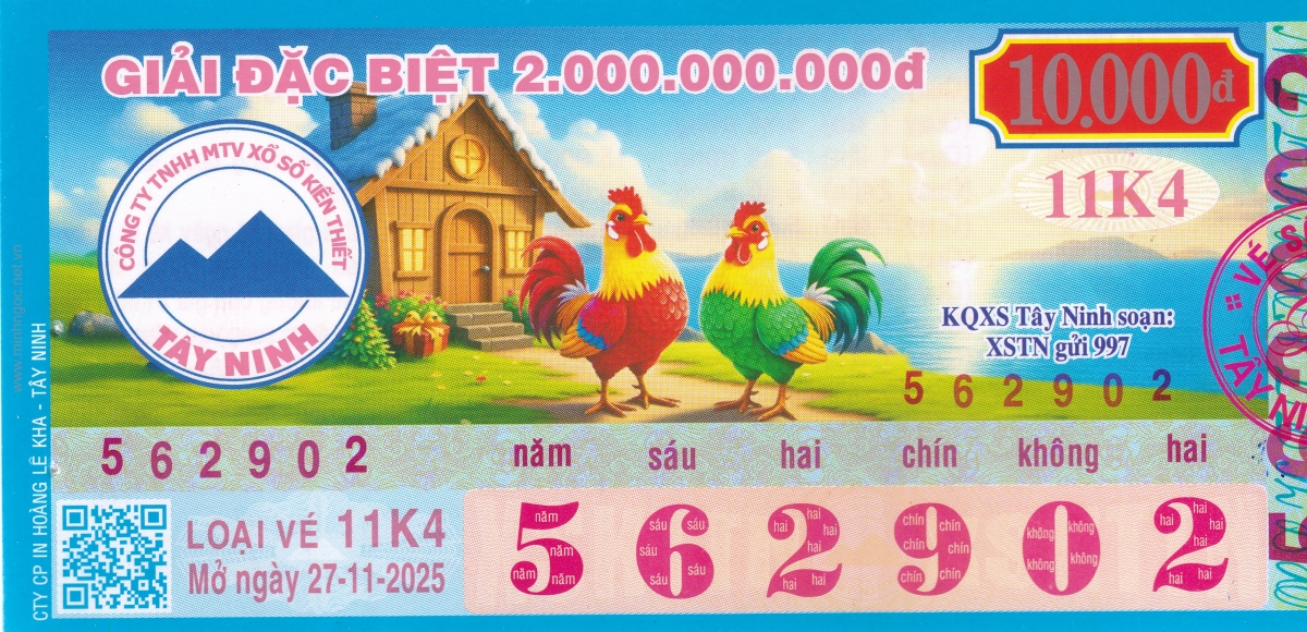 Mẫu vé kiểm tra khi đổi số trúng Tây Ninh Ngày: 27/11/2025
