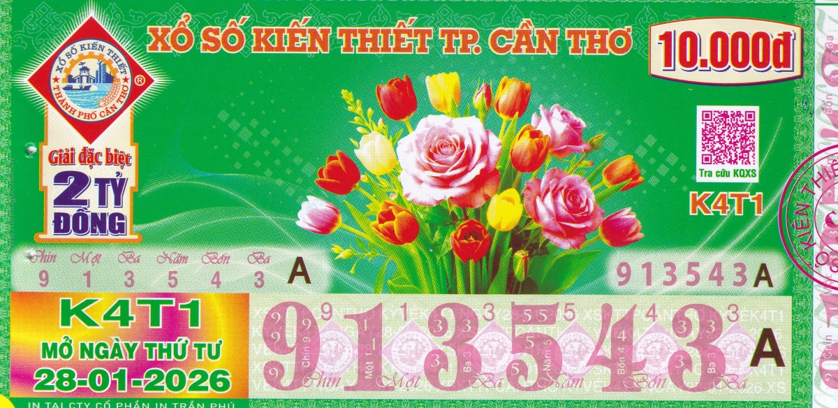 Mẫu vé kiểm tra khi đổi số trúng Cần Thơ Ngày: 28/01/2026