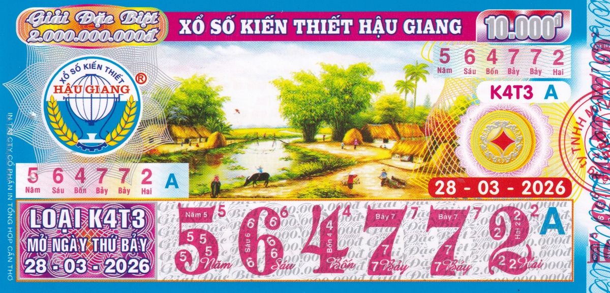 Mẫu vé kiểm tra khi đổi số trúng Hậu Giang Ngày: 28/03/2026