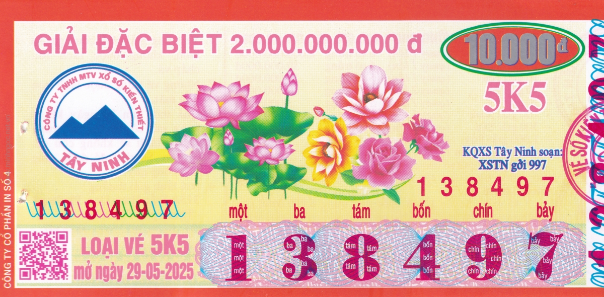 Mẫu vé kiểm tra khi đổi số trúng Tây Ninh Ngày: 29/05/2025