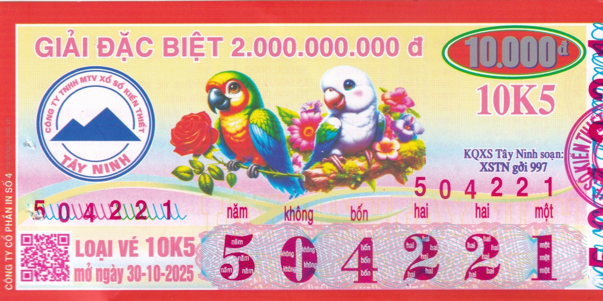 Mẫu vé kiểm tra khi đổi số trúng Tây Ninh Ngày: 30/10/2025