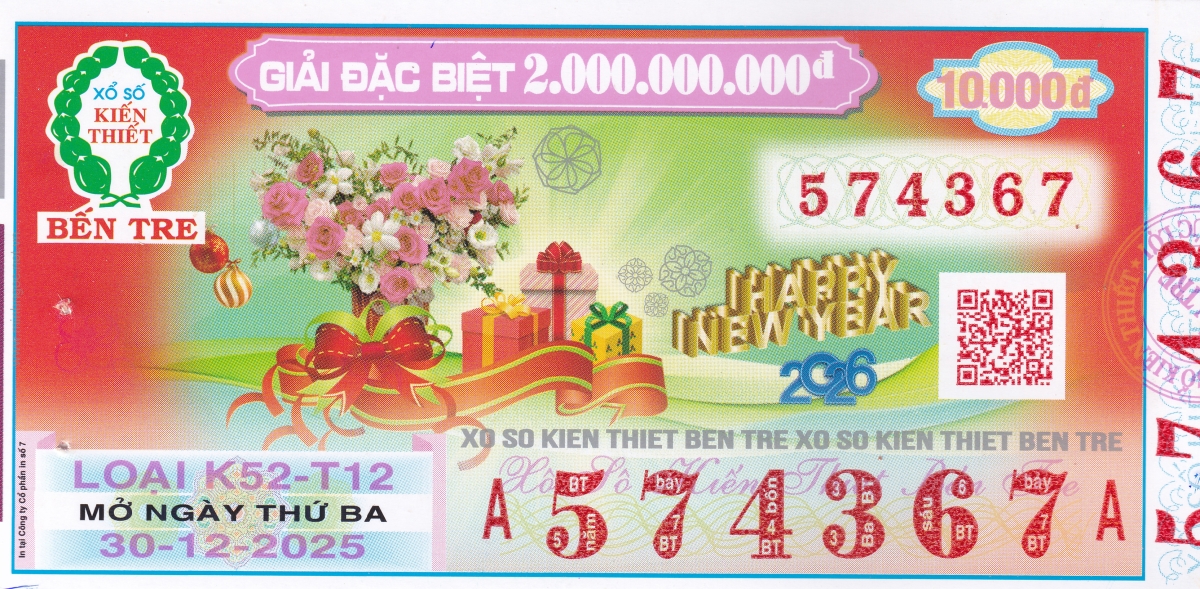 Mẫu vé kiểm tra khi đổi số trúng Bến Tre Ngày: 30/12/2025