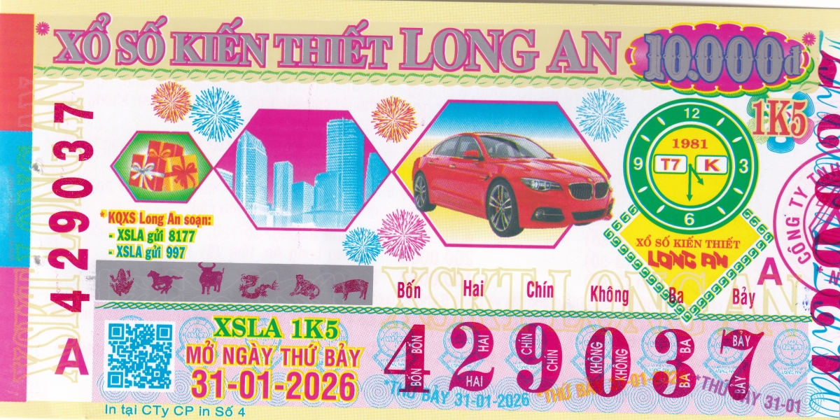 Mẫu vé kiểm tra khi đổi số trúng Long An Ngày: 31/01/2026