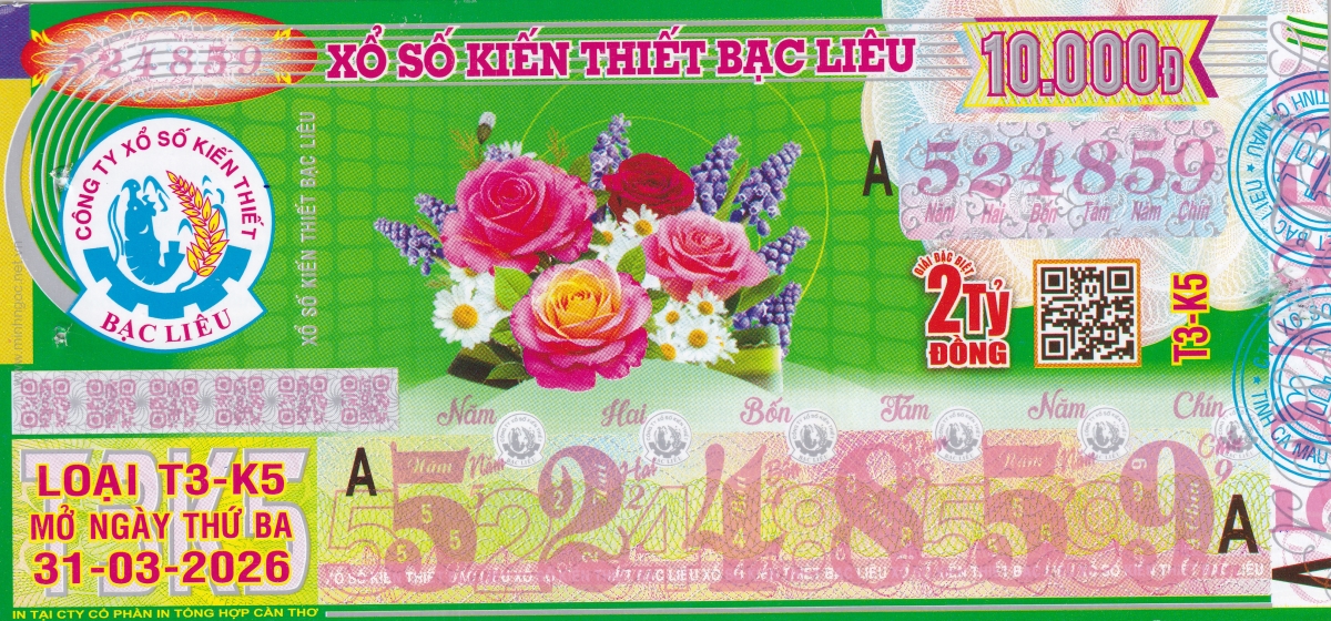 Mẫu vé kiểm tra khi đổi số trúng Bến Tre Ngày: 31/03/2026