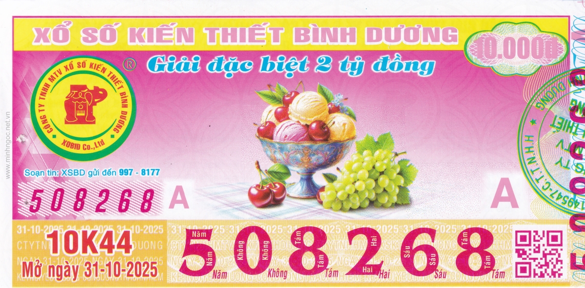Mẫu vé kiểm tra khi đổi số trúng Bình Dương Ngày: 31/10/2025