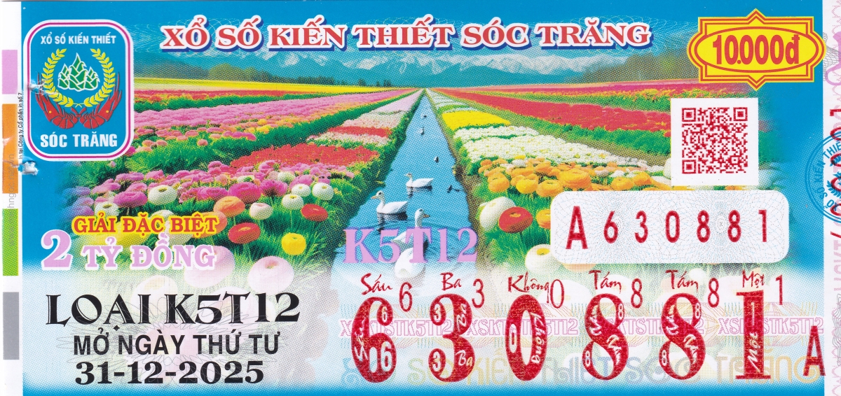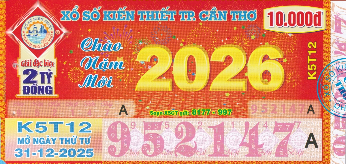 Mẫu vé kiểm tra khi đổi số trúng Cần Thơ Ngày: 31/12/2025