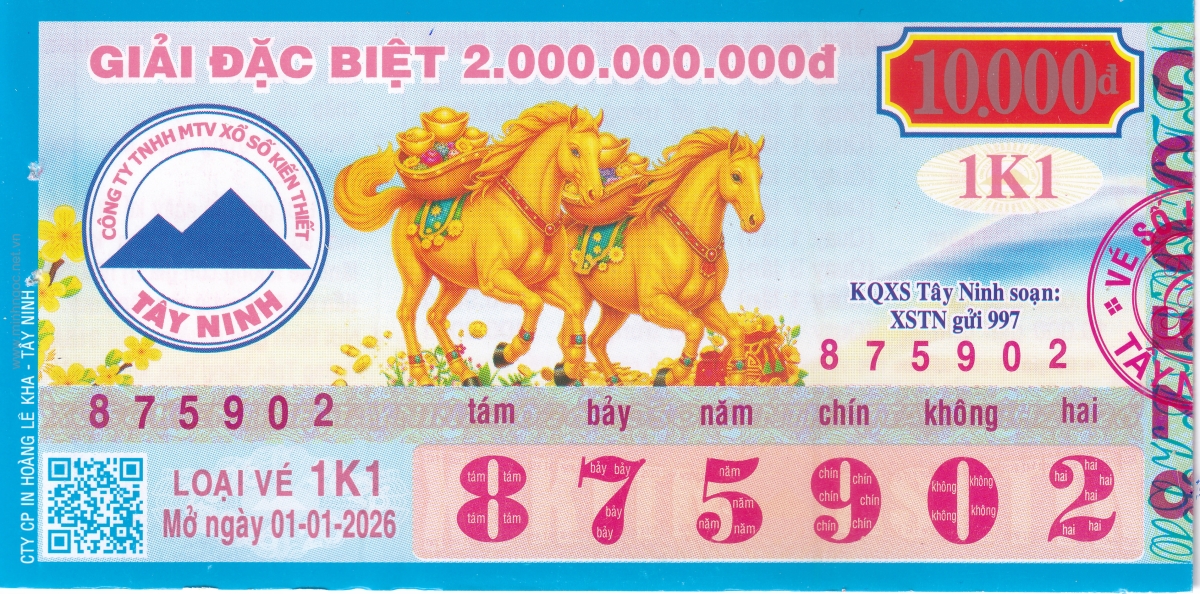 Mẫu vé kiểm tra khi đổi số trúng Tây Ninh Ngày: 01/01/2026