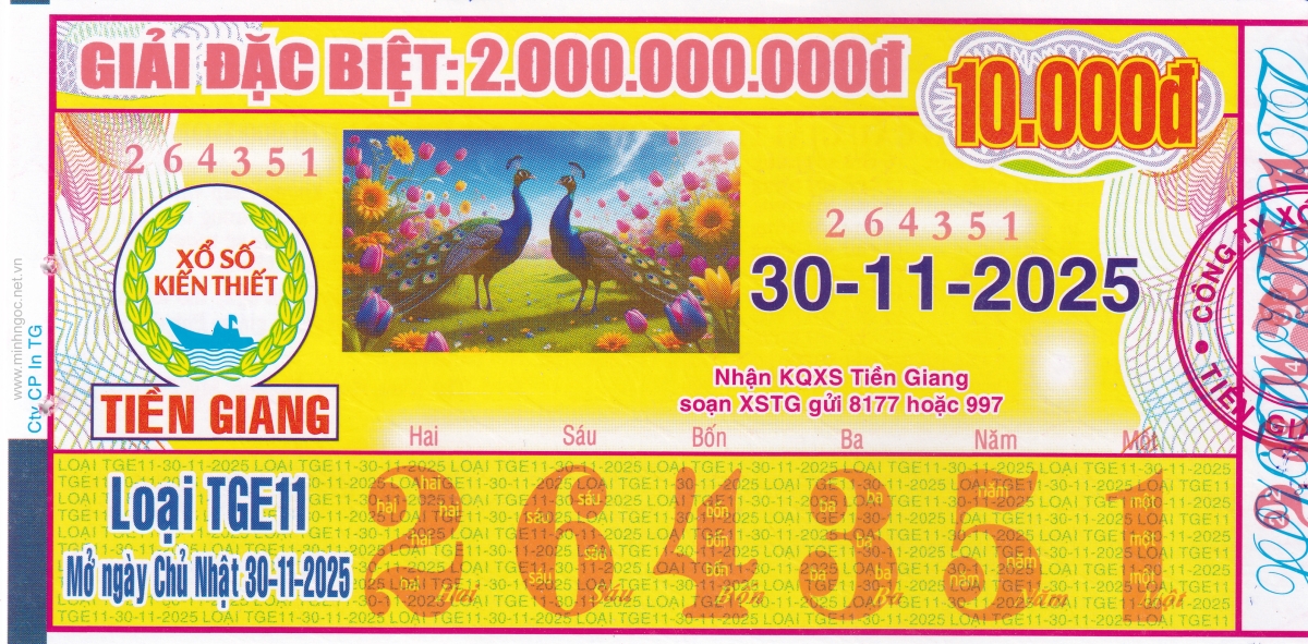 Mẫu vé kiểm tra khi đổi số trúng Tiền Giang Ngày: 30/11/2025