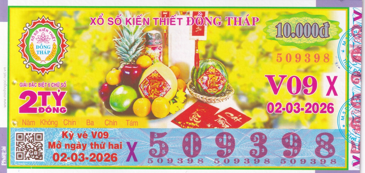 Mẫu vé kiểm tra khi đổi số trúng Đồng Tháp Ngày: 02/03/2026
