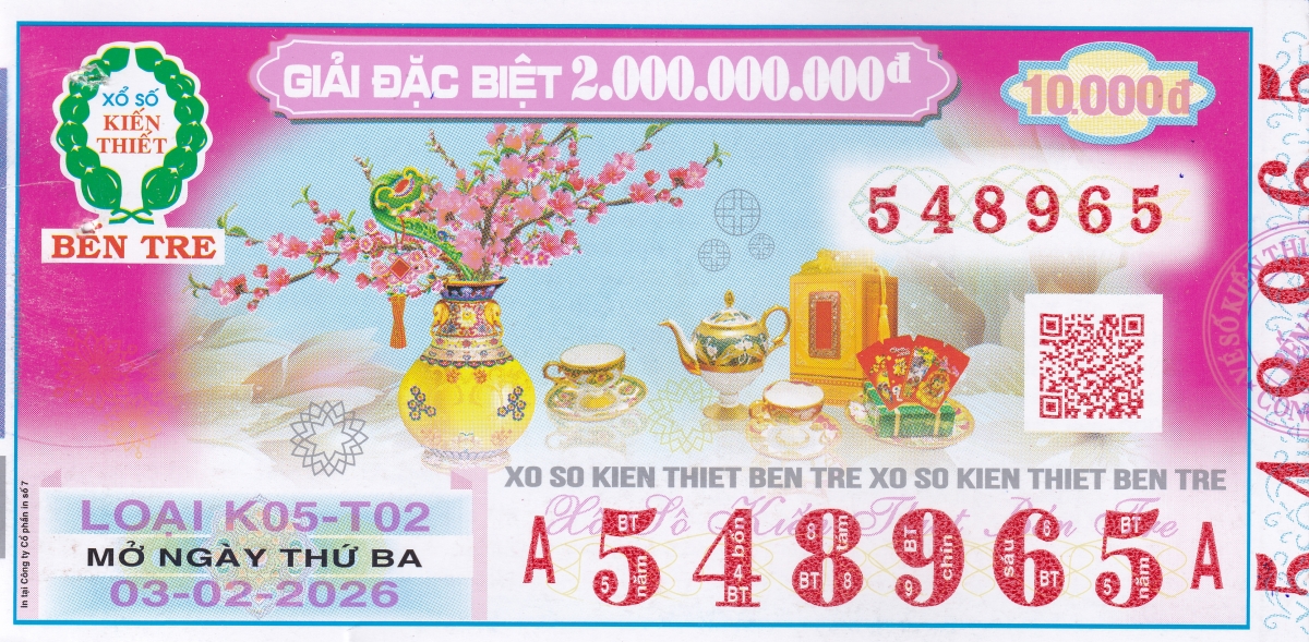 Mẫu vé kiểm tra khi đổi số trúng Bến Tre Ngày: 03/02/2026