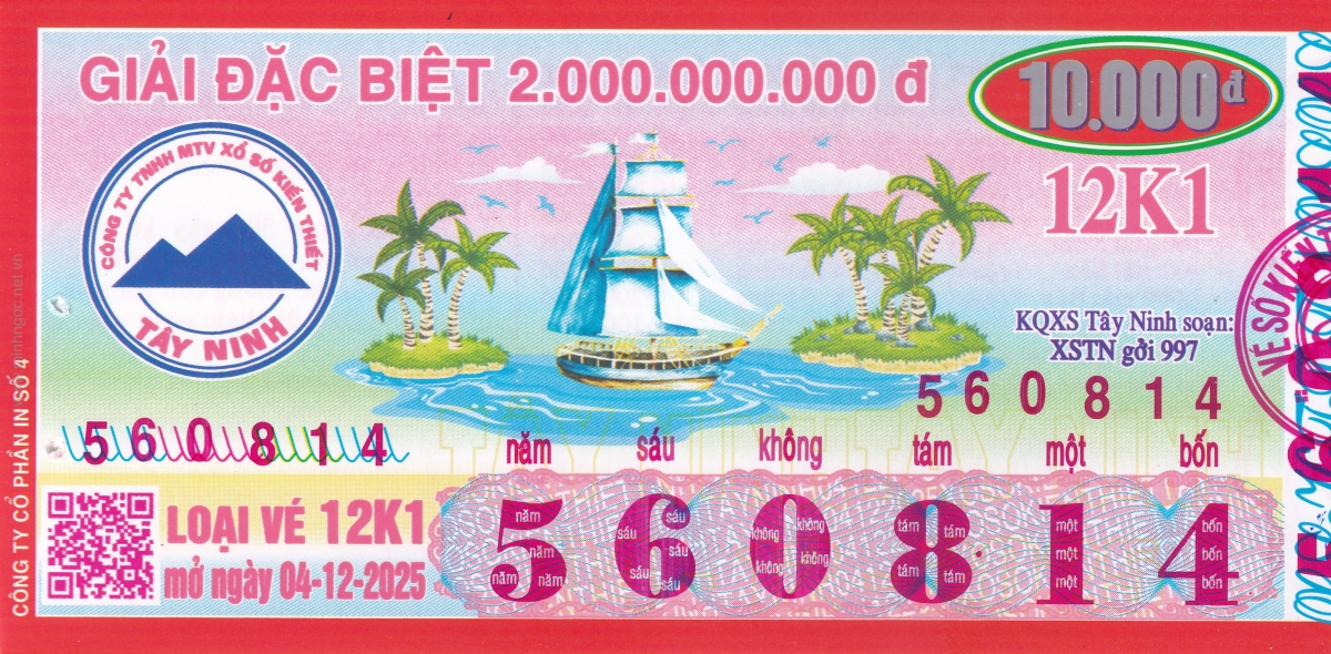 Mẫu vé kiểm tra khi đổi số trúng Tây Ninh Ngày: 04/12/2025
