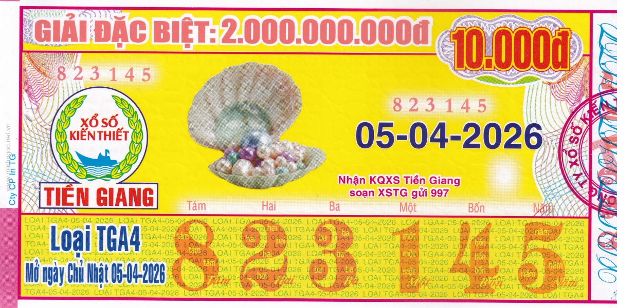 Mẫu vé kiểm tra khi đổi số trúng Tiền Giang Ngày: 05/04/2026